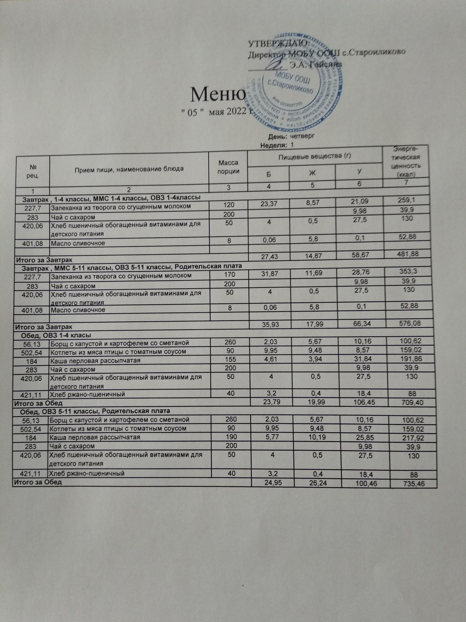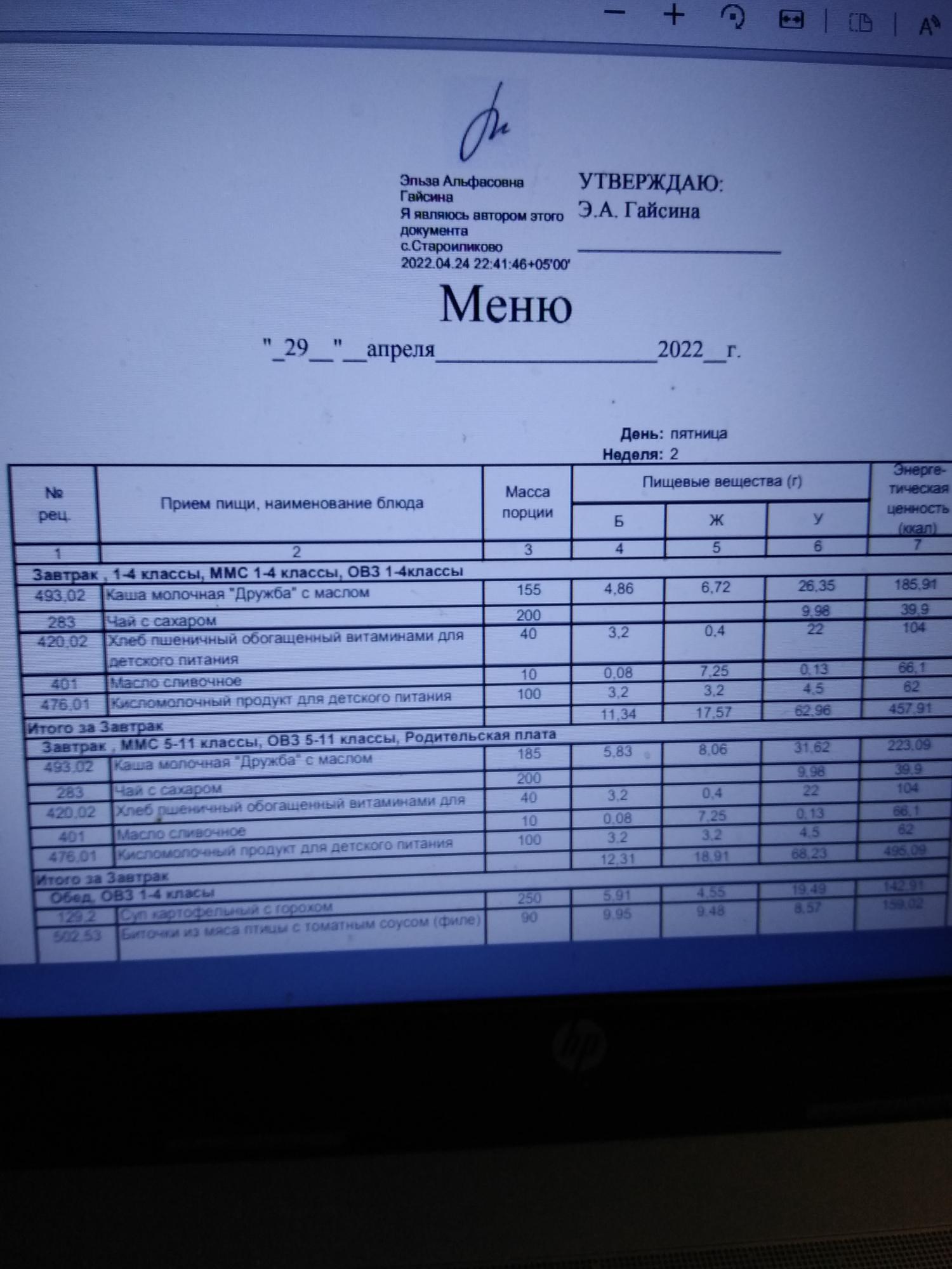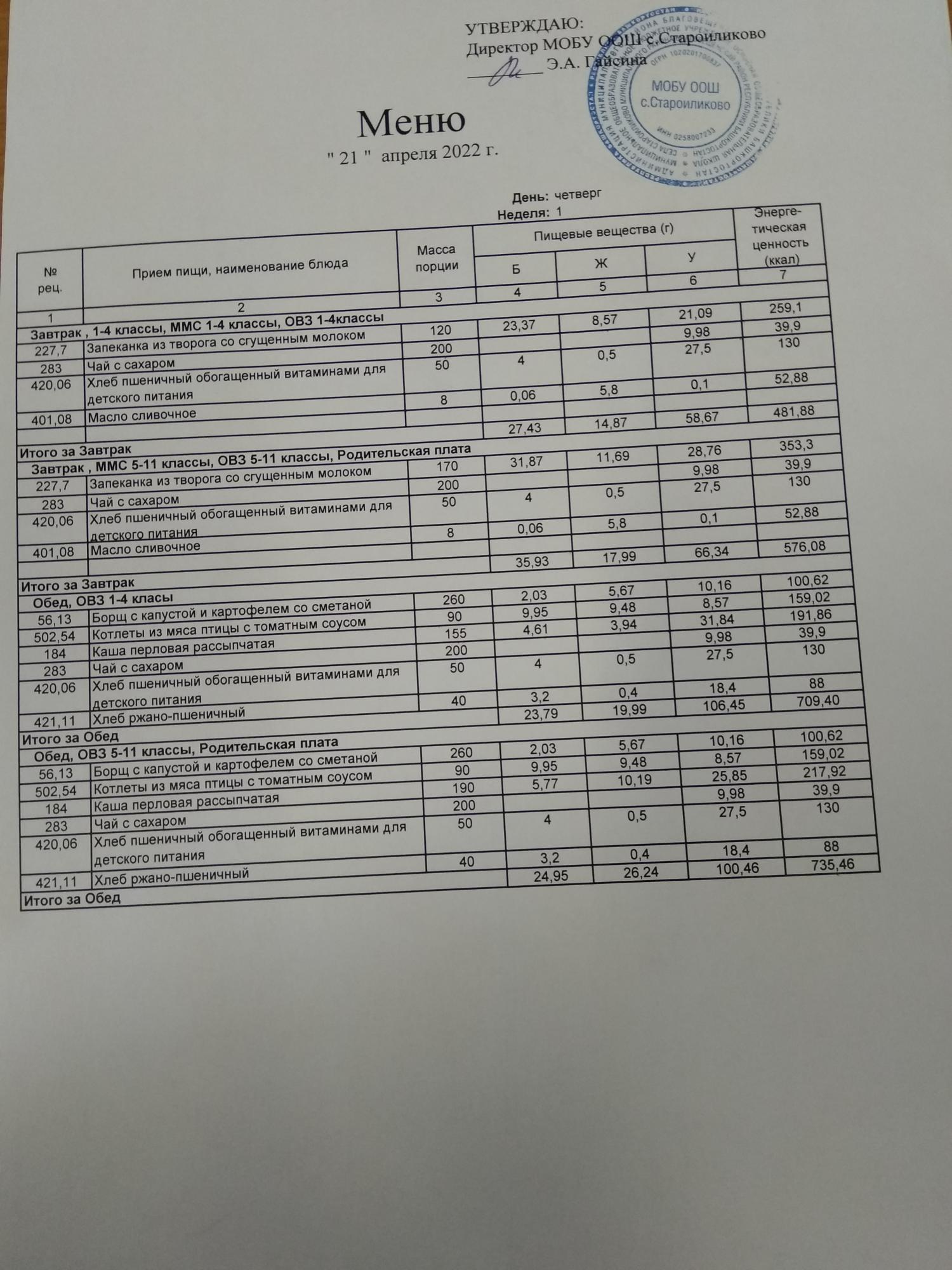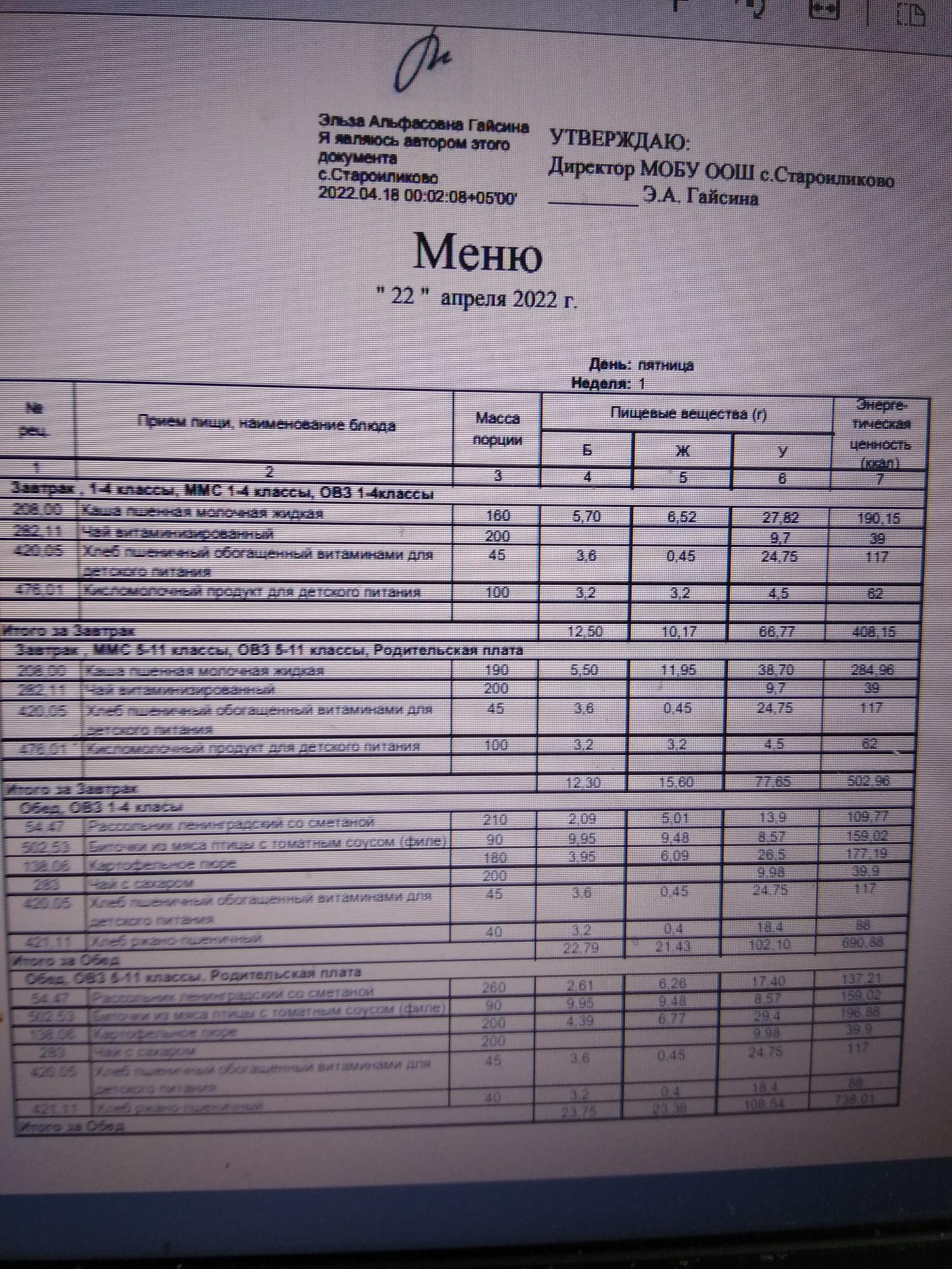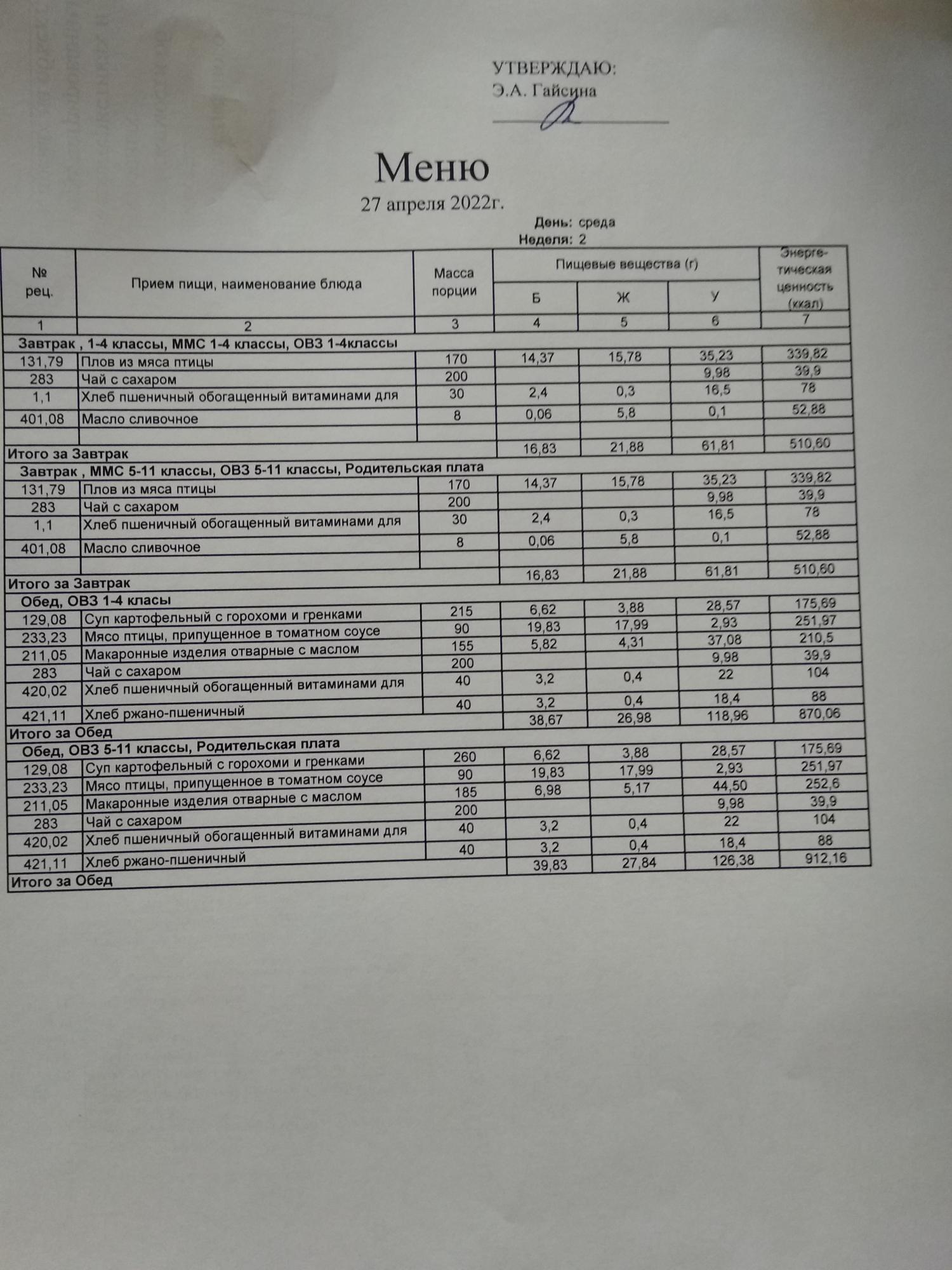 Стоимость школьного питания